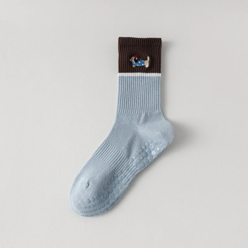 Yoga Socks Women Silicone Anti-slip Professional Indoor Workout Pilates Socks Cartoon Dog Embroidery Cute Fitness Sports Socks